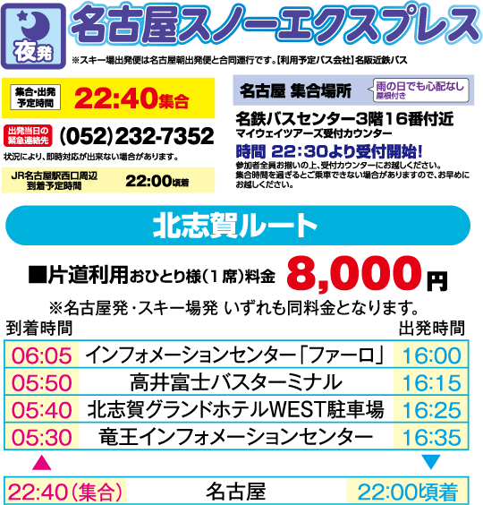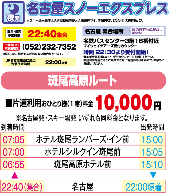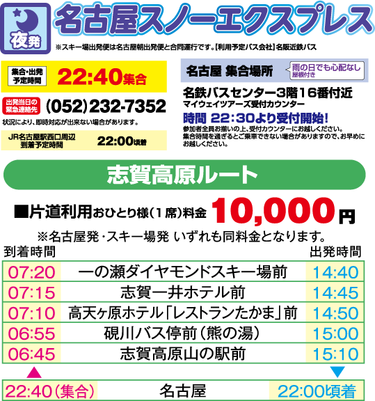 【夜発】名古屋スノーエクスプレス 052-232-7352